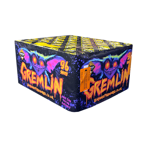 Unleash a mischievous sky show with Gremlin, a high-intensity 96-shot barrage from Diamond Fireworks.
